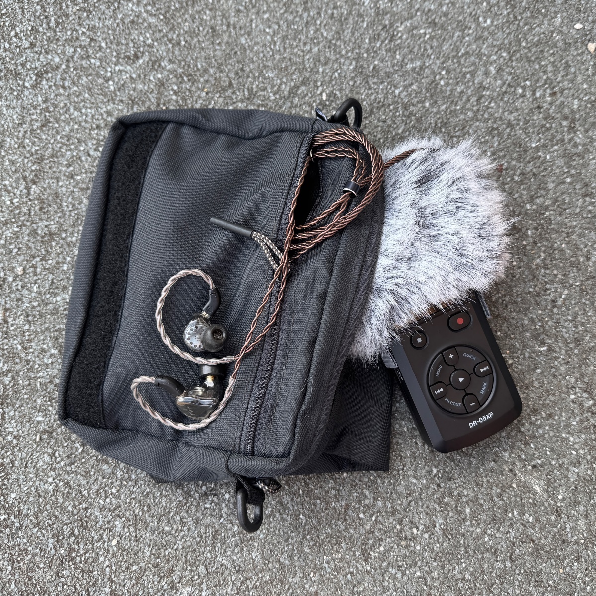 Az első a három közül a DR-05XP sztereó felvevő, amely a legkisebb hordozható eszköz a Tascam családban. Ez tulajdonképpen mindig nálam van: övtáskában, autóban, biciklin vagy hátizsákban, frissen feltöltött AA ceruzaakkumulátorokkal betárazva. A körülbelül 4–5 másodperces indítási idő után azonnal készen áll a hangfelvételre. Egy kis méretű, de nagyon jó minőségű in-ear fülhallgatót használok hozzá (FiiO FH1) és egy szintén Tascam gyártmányú WS-11 szélvédőt is.